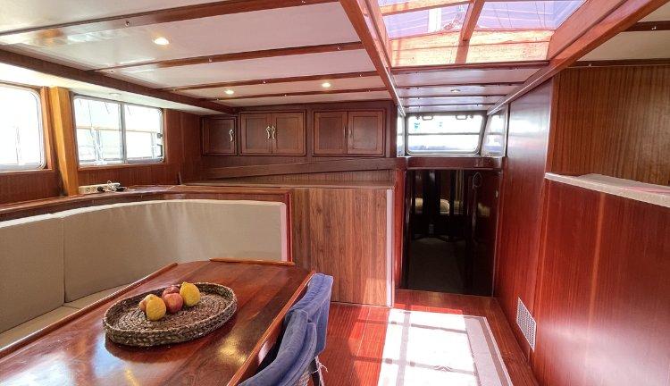 Marmaris ana limanlı bu özel motorsailer, alanında deneyimli dört kişilik profesyonel mürettebatı ile kişiselleştirilmiş ve kusursuz bir hizmet anlayışı sağlar. Bin dokuz yüz doksan yedi yılında inşa edilen ve iki bin yirmi bir yılında yenilenen tekne, klasik denizcilik karakterini modern dokunuşlarla bir araya getirir.