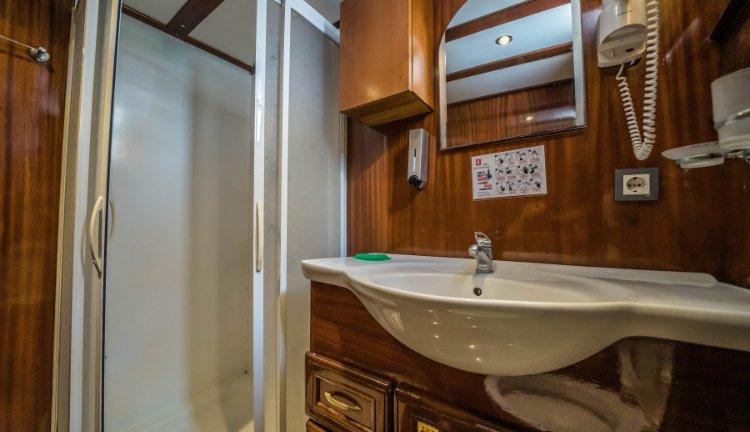 Toplam sekiz kabin (dört double, dört twin) ile en fazla on altı misafiri ağırlayabilen tekne, mahremiyet ve konforu ön planda tutacak şekilde tasarlanmıştır. Tüm kabinlerde bulunan klima sistemi, yolculuk boyunca her koşulda üst düzey bir konaklama konforu sunar.